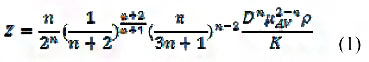 動特性為基礎,可以運用Z值法來判斷聚合物在圓管中的流態(tài)。判斷冪律流體在圓管中流型的計算公式如下所示。