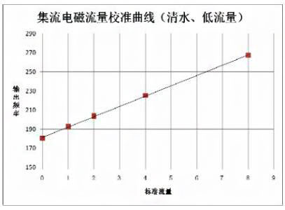 圖2 集流式電磁流量計校準曲線(清水、低流量)