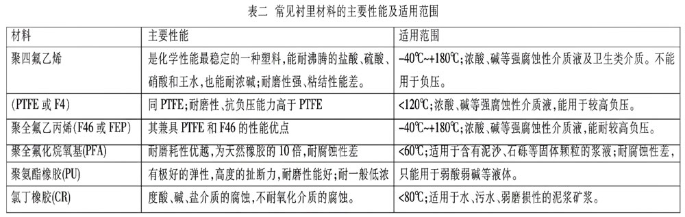 2.測量管襯里材料的選型及應(yīng)用