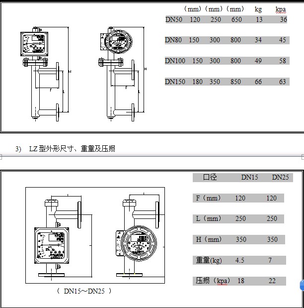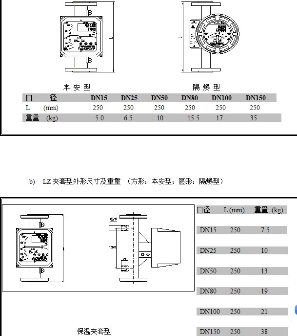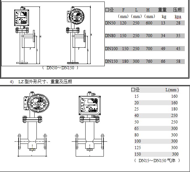 a) LZ-標(biāo)準(zhǔn)型外形尺寸及重量