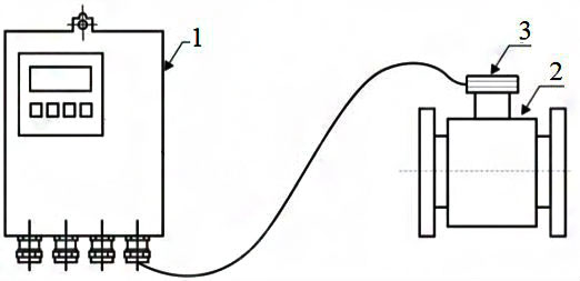 進(jìn)一步的,所述電磁流量傳感器包括導(dǎo)管,以及位于導(dǎo)管壁上的用于檢測流體溫度的溫度傳感器和用于檢測流體流動所產(chǎn)生電動勢的電極,在電極的外側(cè)設(shè)置有一圈磁軛,在磁軛的兩側(cè)分別設(shè)置有用來產(chǎn)生垂直于流體流動方向磁場的勵(lì)磁線圈,在磁軛和勵(lì)磁線圈的外側(cè)設(shè)置有起保護(hù)作用的外殼。所述接線盒和外殼一體設(shè)置,接線盒為密封結(jié)構(gòu),接線盒的線纜出口處采用水下堵漏膠密封。所述微處理器采用16位嵌入式超微功耗處理器。微處理器上還連接有實(shí)時(shí)時(shí)鐘模塊。