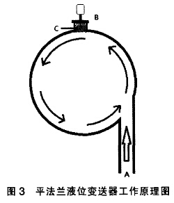 在儀表選型過程中.我們往往會忽略水流對壓力的影響,若A點與桶切線垂直,則桶內的水不會形成漩渦,但從A點下落的水柱會影響到C點壓力的測量, 造成單法蘭變送器正壓側測量數據不穩(wěn)定;若A點與桶切線不垂直,則桶內水會形成漩渦,無論C點在什么位置,都會造成單法蘭變送器的正壓側測量數據失真??紤]到蒸汽冷凝水的閃發(fā)效率,一般情況下都采用A點與桶切線方向平行的進口方式.如此桶內必然會形成漩渦,變送器的選型問題至關重要。