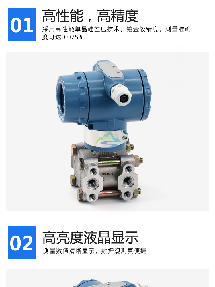 精 確 度:壓力/差壓變送器精度隨量程的不同而變化,分別在± 0.1% —± 0.5%之間。