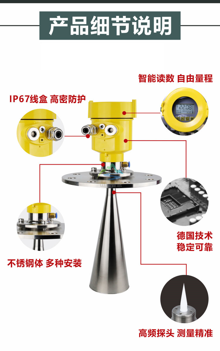 1、通用性強(qiáng):可測量液位及料位,可滿足不同溫度、壓力、介質(zhì)的測量要求,*高測量溫度可達(dá)800℃,*大壓力可達(dá)5MPa,并可應(yīng)用于腐蝕、沖擊等惡劣場合。