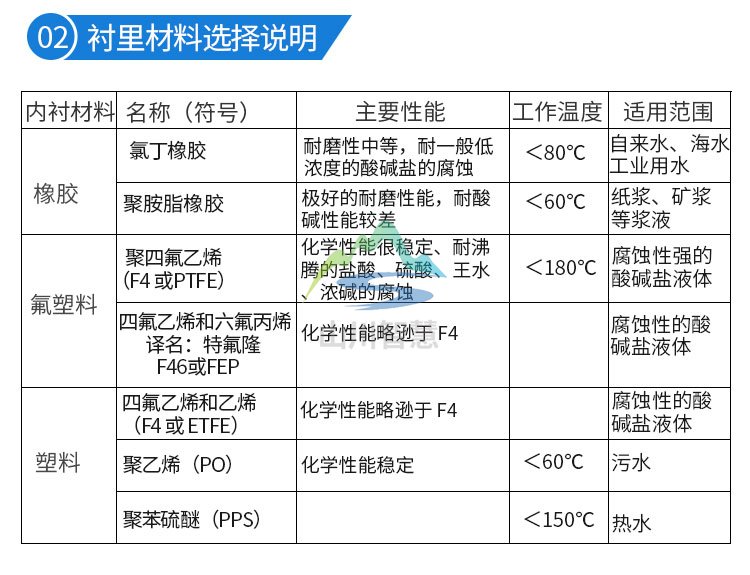 聚四氟乙烯、聚氯丁橡膠、聚氨酯、聚全氟乙丙烯F46、加網(wǎng)PFA