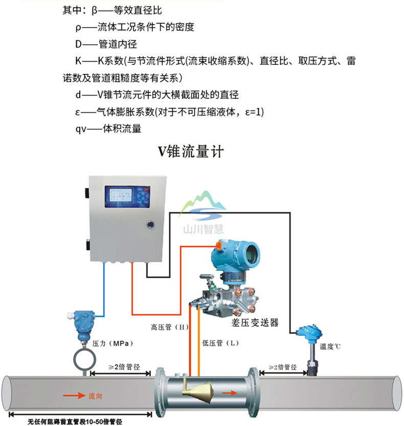 直管段要求低:流量計(jì)前0~3D 直管段、后0~1D 直管段即可保證測量精度。實(shí)驗(yàn)證明,V錐流量計(jì)可以接近單彎管或不同平面的雙彎管而對精度影響很小。