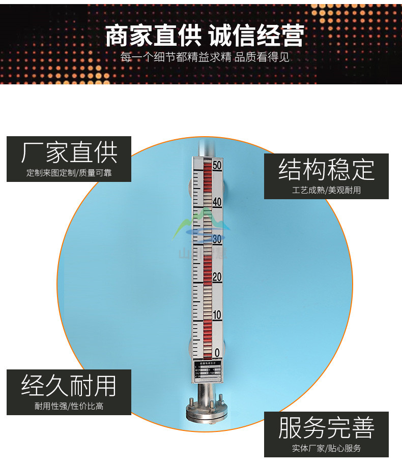 1、以浮子為測量元件,磁鋼驅動翻柱顯示,無需能源。