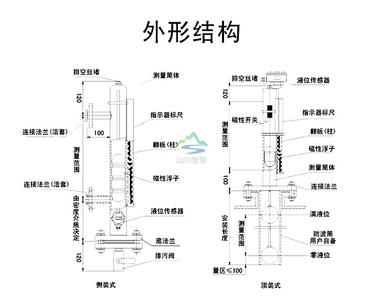 磁翻板液位計是本公司引進、吸收國外同類產品,并加以吸收、消化、提高,按原化學工業(yè) 部頒布的磁性液位計標準HG/T21584-95研制生產的產品??捎糜诟鞣N塔、罐槽、球形容器和鍋爐等設備的介質液位檢測。該系列磁性液位計可以做到高密封,防泄漏和適應高壓高溫、腐蝕性條件下的液位測量,具有可靠的安全性,它彌補了玻璃板(管)液位計指示不清晰,易破碎的不足,不受高、低溫度劇變的影響,不需多組液位計的組合。全過程測量無盲區(qū),顯示醒目、讀數直觀,且測量范圍大。特別是現場指示部分,由于不與液體介質直接接觸,所以對高溫、高壓、高粘度、有毒有害、強腐蝕性介質,更顯其優(yōu)越性。因此,它比傳統的玻璃管,板式液位計具有更高的可靠性、安全性、**性、實用性。 側裝式磁翻柱液位計的*顯著特點是液體介質與指示器完全隔離,所以在任何情況下都非常安全、可靠、耐用,而且各種型號的液位計配上液位報警、控制開關,可實現液位或界位的上、下限越位報警,控制或連鎖;配上靜壓式液位變送器或干簧-電阻式液位變送器,可將液位,界位信號轉換成二線制4-20mADC標準信號,實現遠距離指示、檢測、記錄與控制。該系列磁翻板液位計可**適用于電力、石油、化工冶金環(huán)保、船舶、建筑、食品等各行業(yè)生產過程中的液位測量與控制。