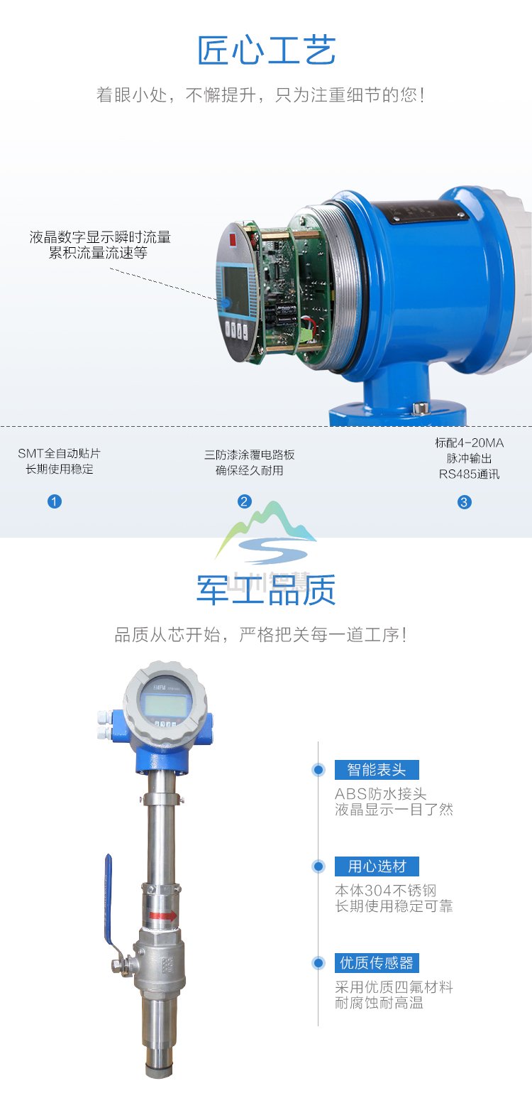 江蘇山川智慧智能儀表科技集團(tuán)有限公司主營:電磁流量計(jì) + 渦街流量計(jì) + 渦輪流量計(jì),超聲波流量計(jì)和孔板流量計(jì),20年經(jīng)驗(yàn)值得信賴,真實(shí)**的電磁流量計(jì)生產(chǎn)廠家