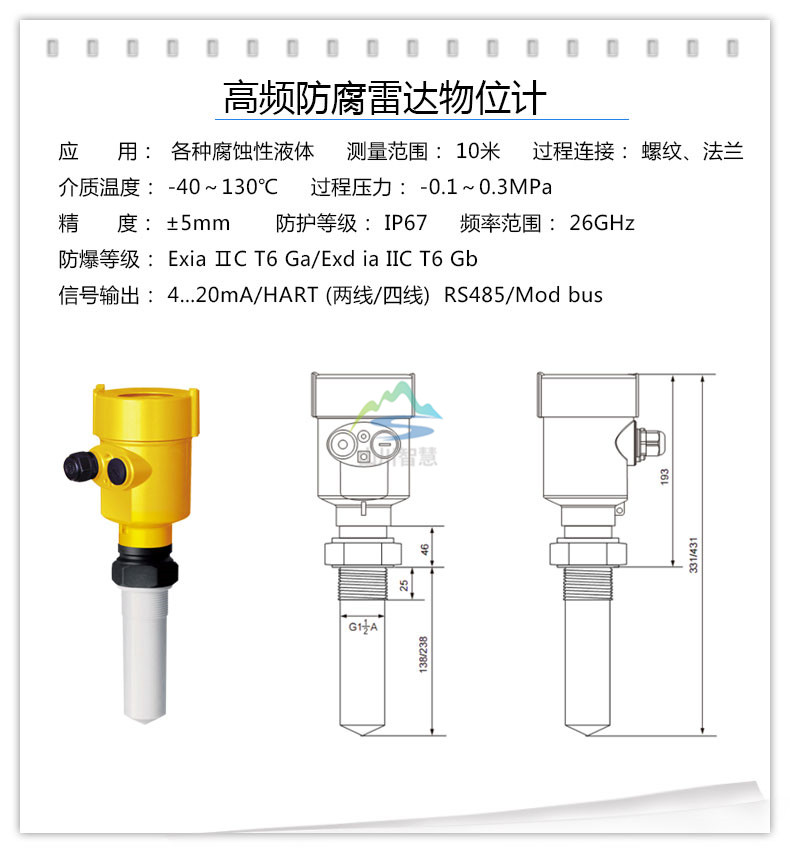 1、防腐導波雷達物位計產(chǎn)品概述: